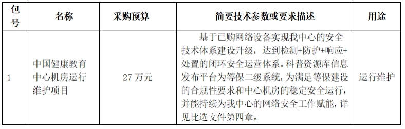 中国健康教育中心机房运行维护项目比选采购公告