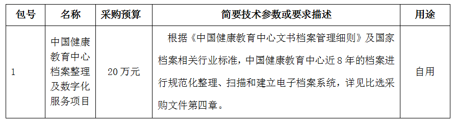 中国健康教育中心档案整理及数字化服务项目比选公告