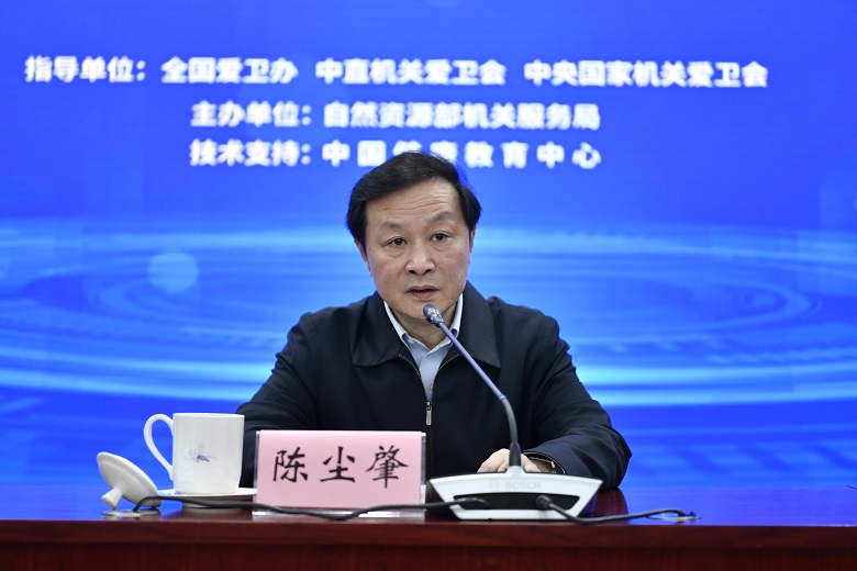 自然资源部党组成员、国家自然资源副总督察陈尘肇在科普讲座活动上致辞。陈尘肇指出,自然资源部党组认真贯彻落实习近平新时代中国特色社会主义思想,高度重视干部职工的身体健康,在国家卫生健康委等部门的支持帮助下,积极引导干部职工树立健康生活理念,广泛开展群众性体育活动,取得了成效。