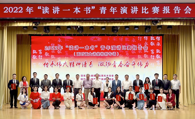 由国家卫生健康委直属机关党委举办的2022年“读讲一本书”活动暨“传承、致敬、笃行、传承伟大精神谱系 激扬青春奋斗伟力”庆祝建团100周年青年演讲比赛于4月—7月举办。经过预赛、决赛的激烈角逐,中心邵安娜、董璞玉两名同志荣获特等奖,并在7月26日演讲比赛报告会上进行了分享。中心党委组织广大党员、干部和青年收看报告会现场直播,并抽调精干力量完成了现场活动暖场片制作和直播等服务保障。