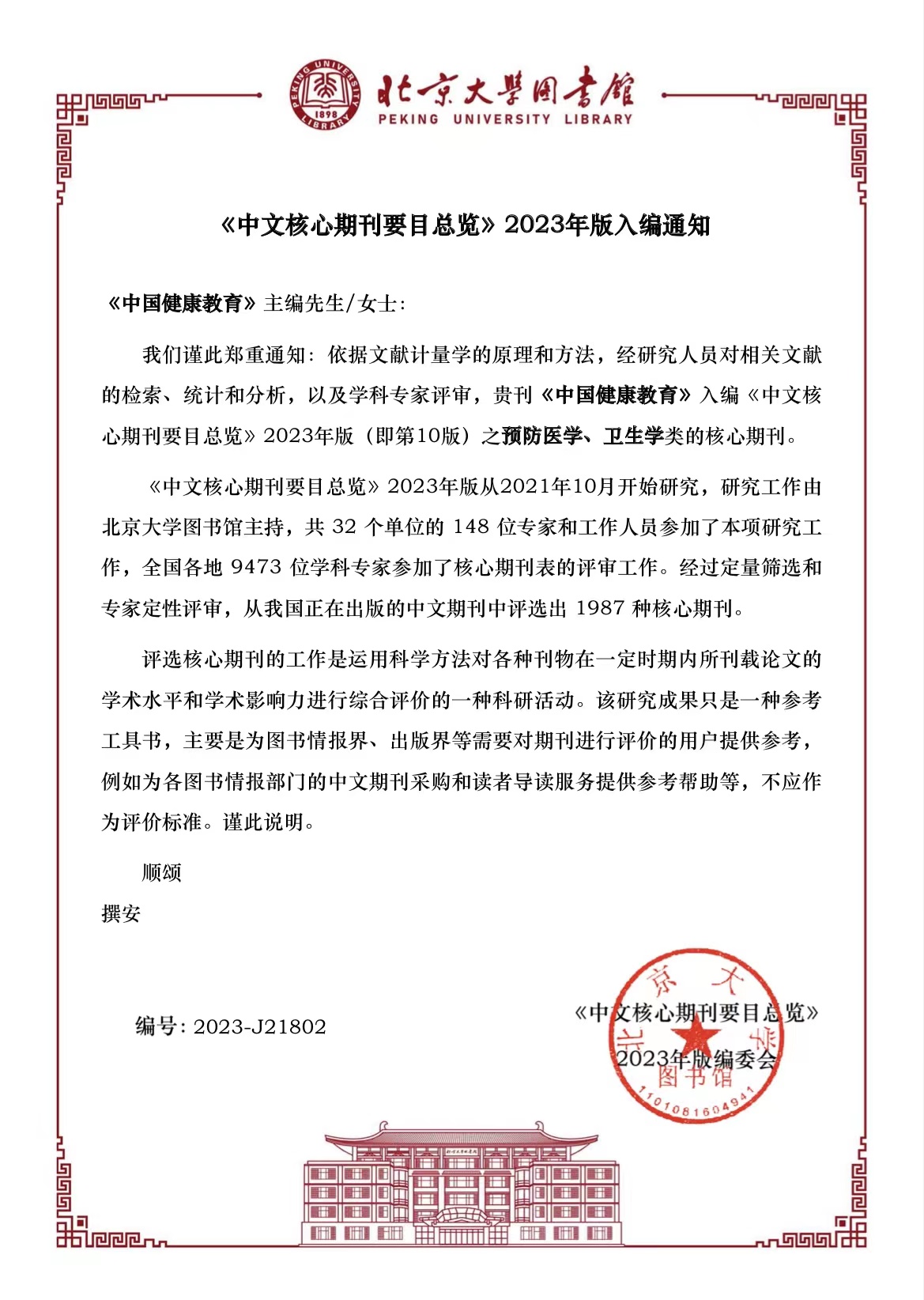 《中国健康教育》杂志连续入选北大中文核心和中文科技核心期刊